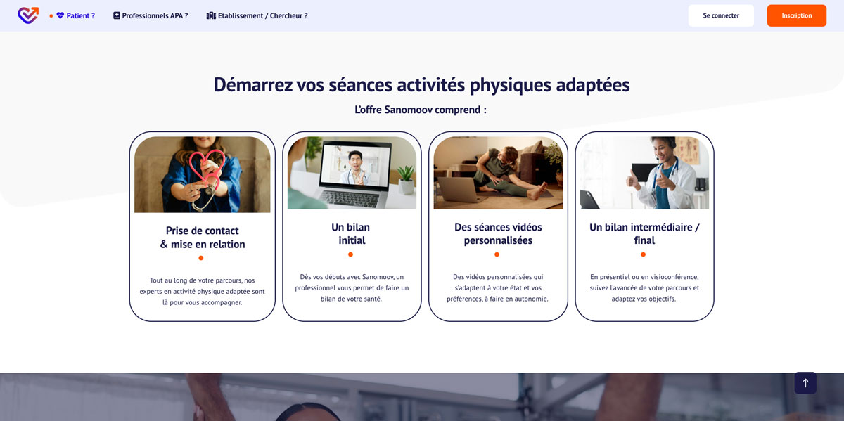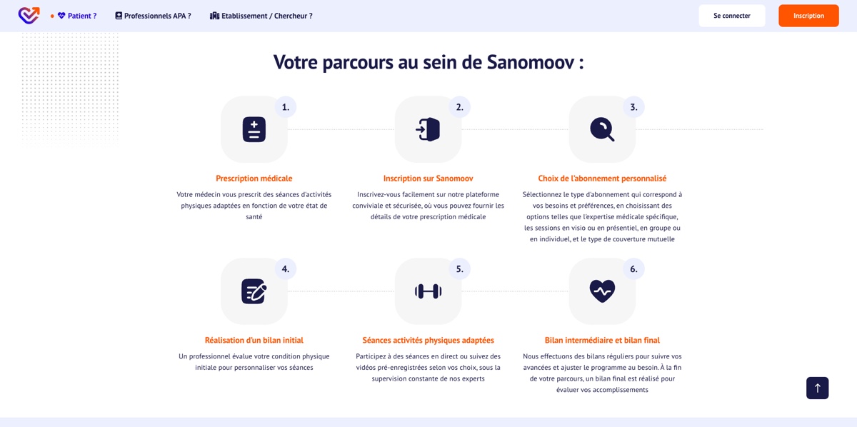 Sanomoov arrive avec une mission claire : rendre l’APA accessible et encadrée, en parlant à la fois aux patients, aux professionnels et aux structures de santé. Notre rôle : transformer cette vision en expériences et en supports cohérents, prêts à faire grandir cette jeune start-up.