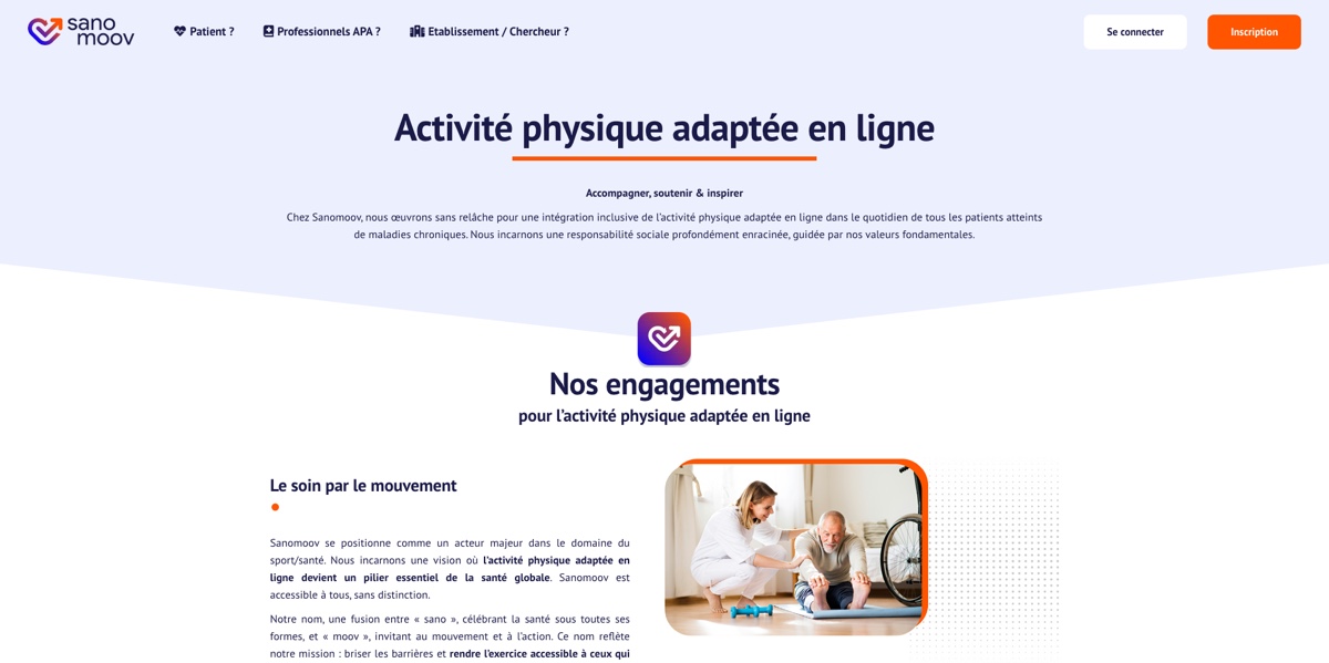 "Chez Sanomoov, nous œuvrons sans relâche pour une intégration inclusive de l’activité physique adaptée en ligne dans le quotidien de tous les patients atteints de maladies chroniques. Nous incarnons une responsabilité sociale profondément enracinée, guidée par nos valeurs fondamentales."